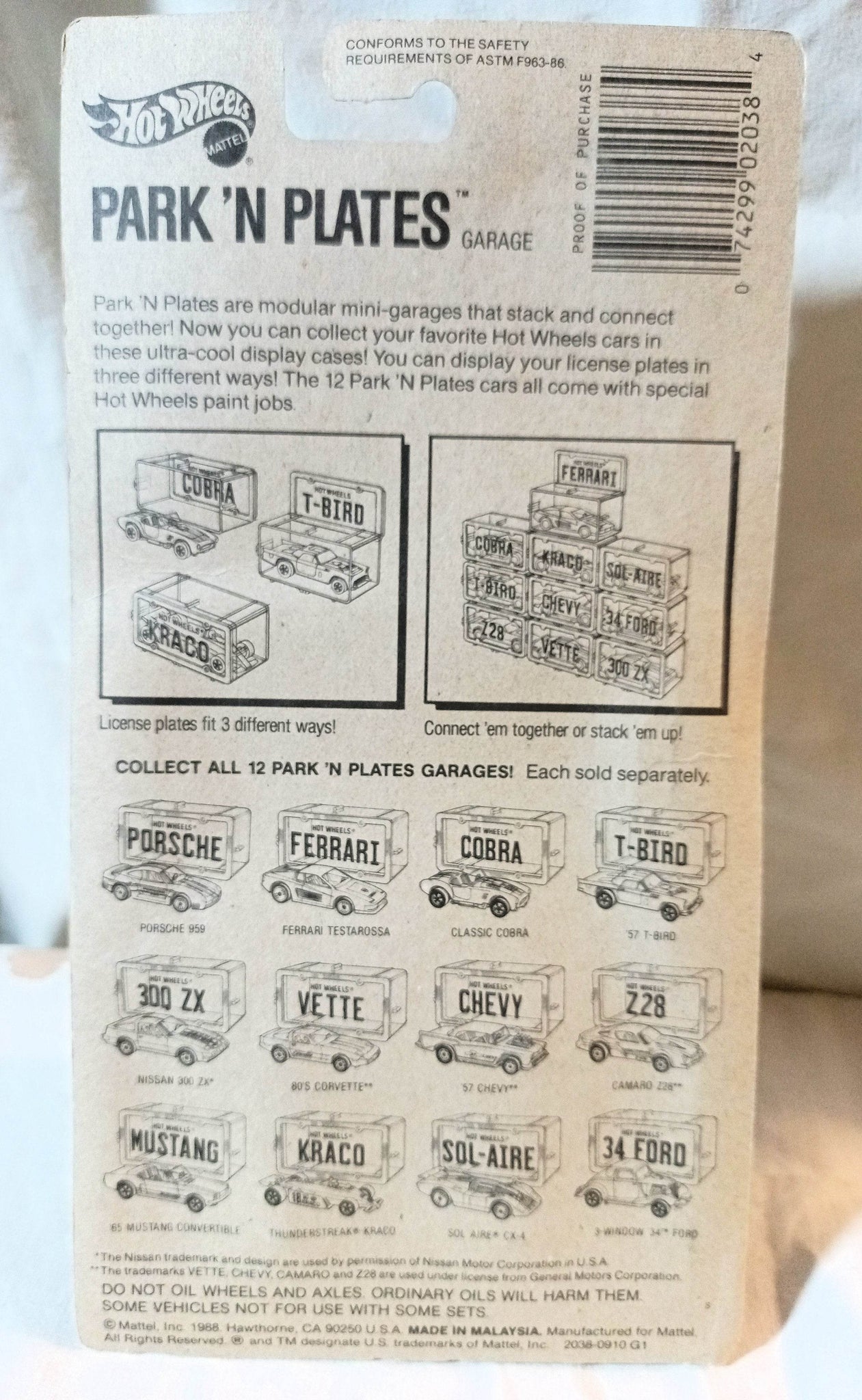 Notes for collectors: Park ’n Plates sets were only available for a short time and each included a diecast vehicle with a matching collectible license plate. This Porsche variation with the blue interior and clear windows is a scarcer combination than the black-interior, or blue interior/blue tinted window versions.