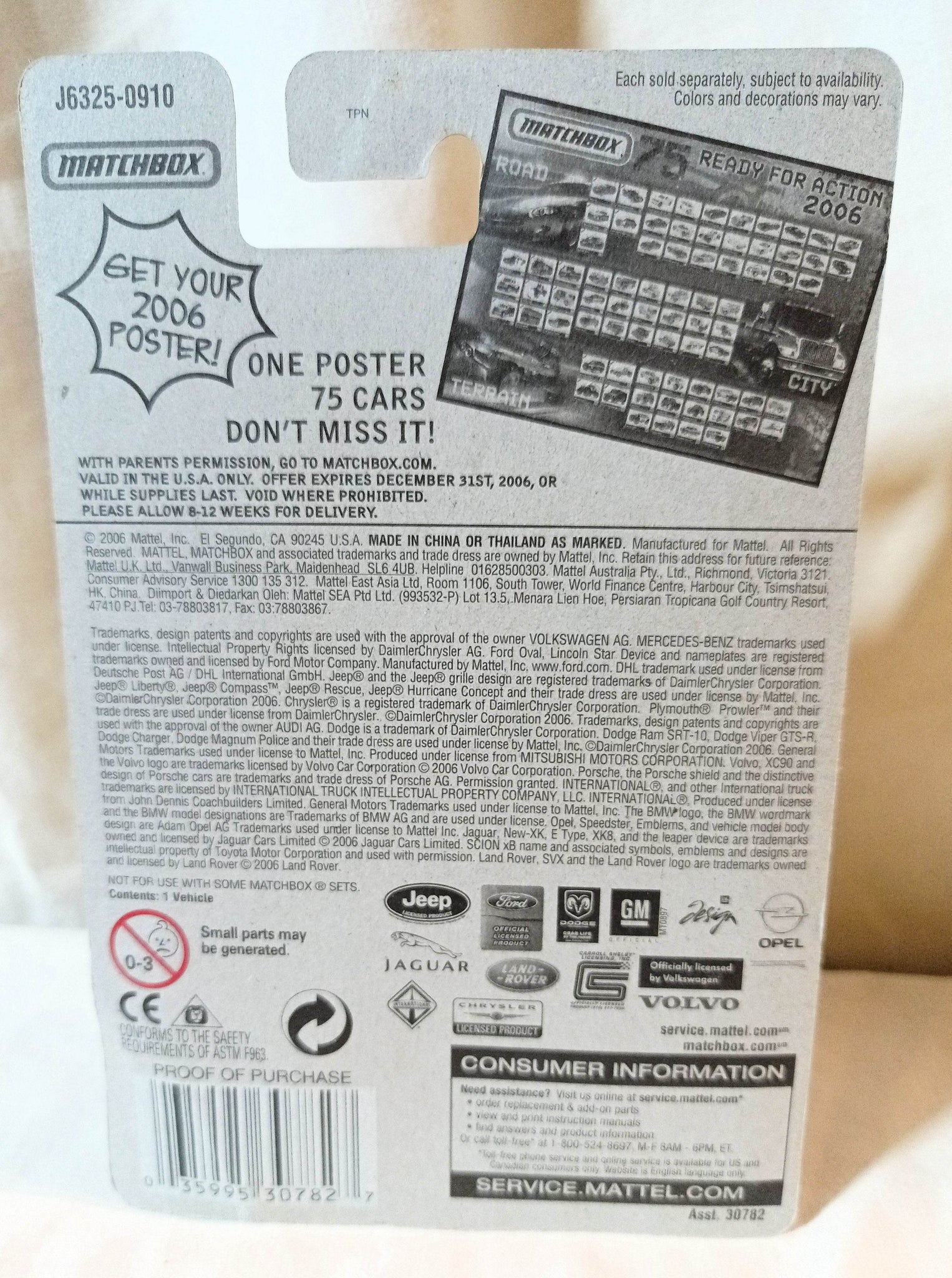 Made in Thailand in 2006. The car is 1/64 scale, 3 inches long (76mm).