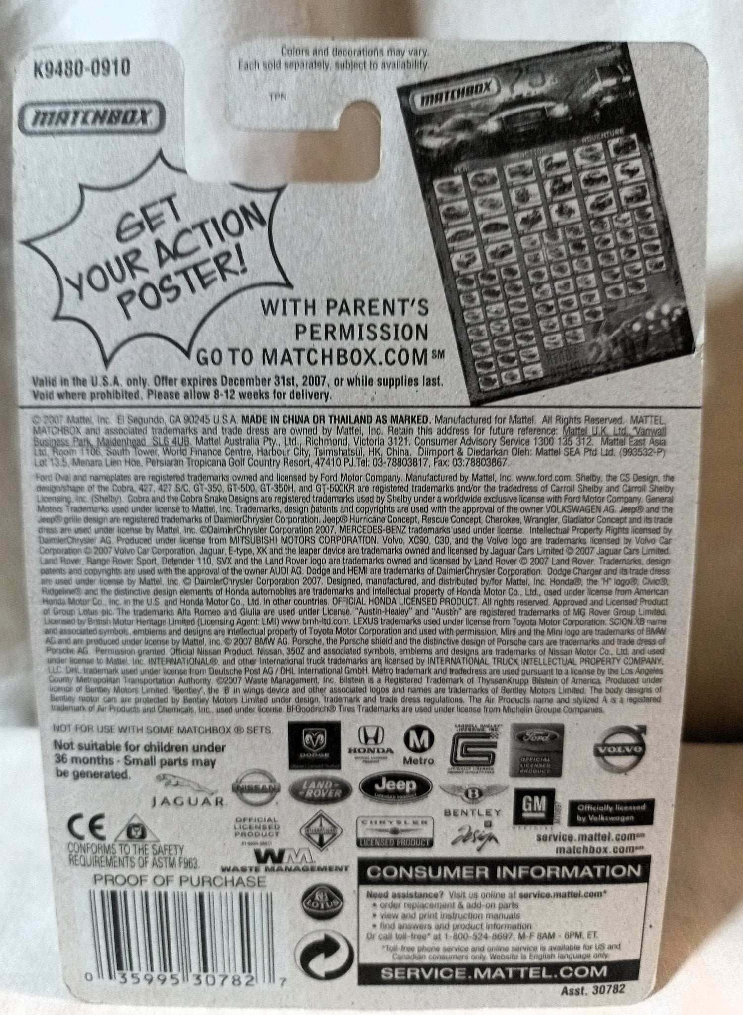 Made in Thailand in 2007. The car is 1/64 scale, 3 inches long (76mm).