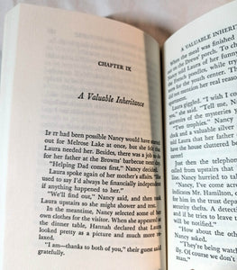 Synopsis: The 1960 revised edition of The Bungalow Mystery begins with Nancy Drew and her friend Helen Corning on vacation at Twin Lakes. A sudden, dangerous storm causes their motorboat to sink, and they are rescued by a teenage girl named Laura Pendleton. Laura is on her way to meet her new guardians, Mr. and Mrs. Aborn, following the recent death of her mother.