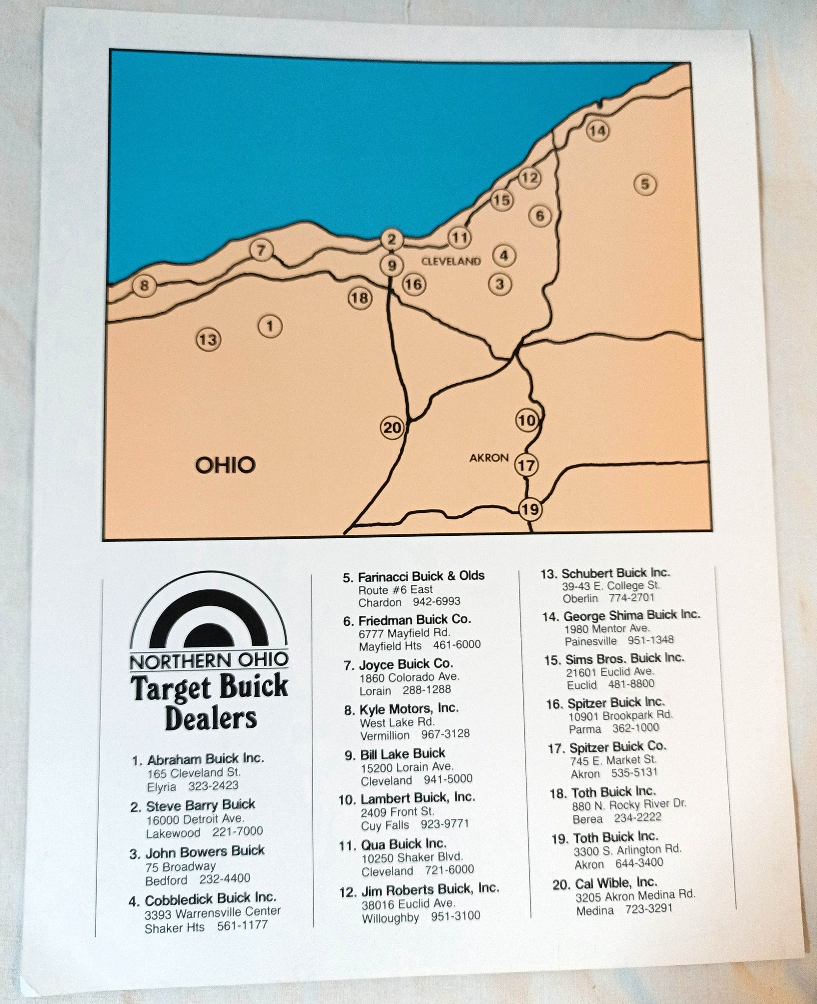 The back of the card has a listing of Target Northern Ohio Buick Dealers locations.