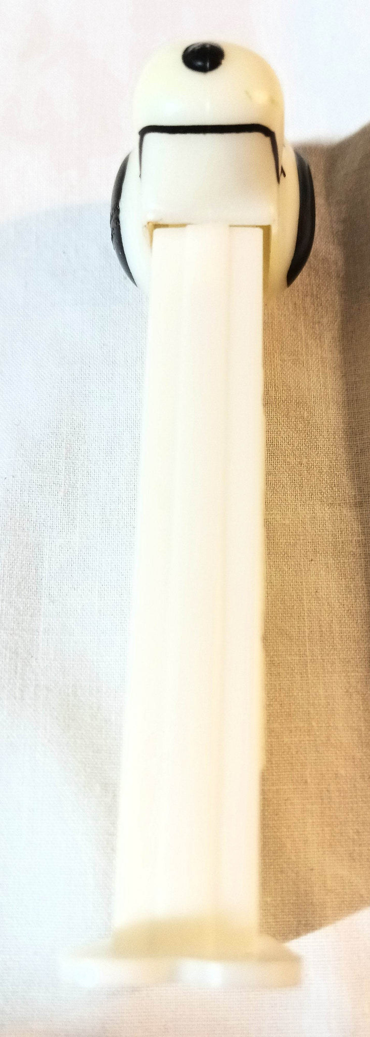 Pez Snoopy (Charlie Brown's dog) from the Peanuts comic strip Candy Dispenser, made in Slovenia in 1991. The base has U.S. patent no. 4,966,305.
