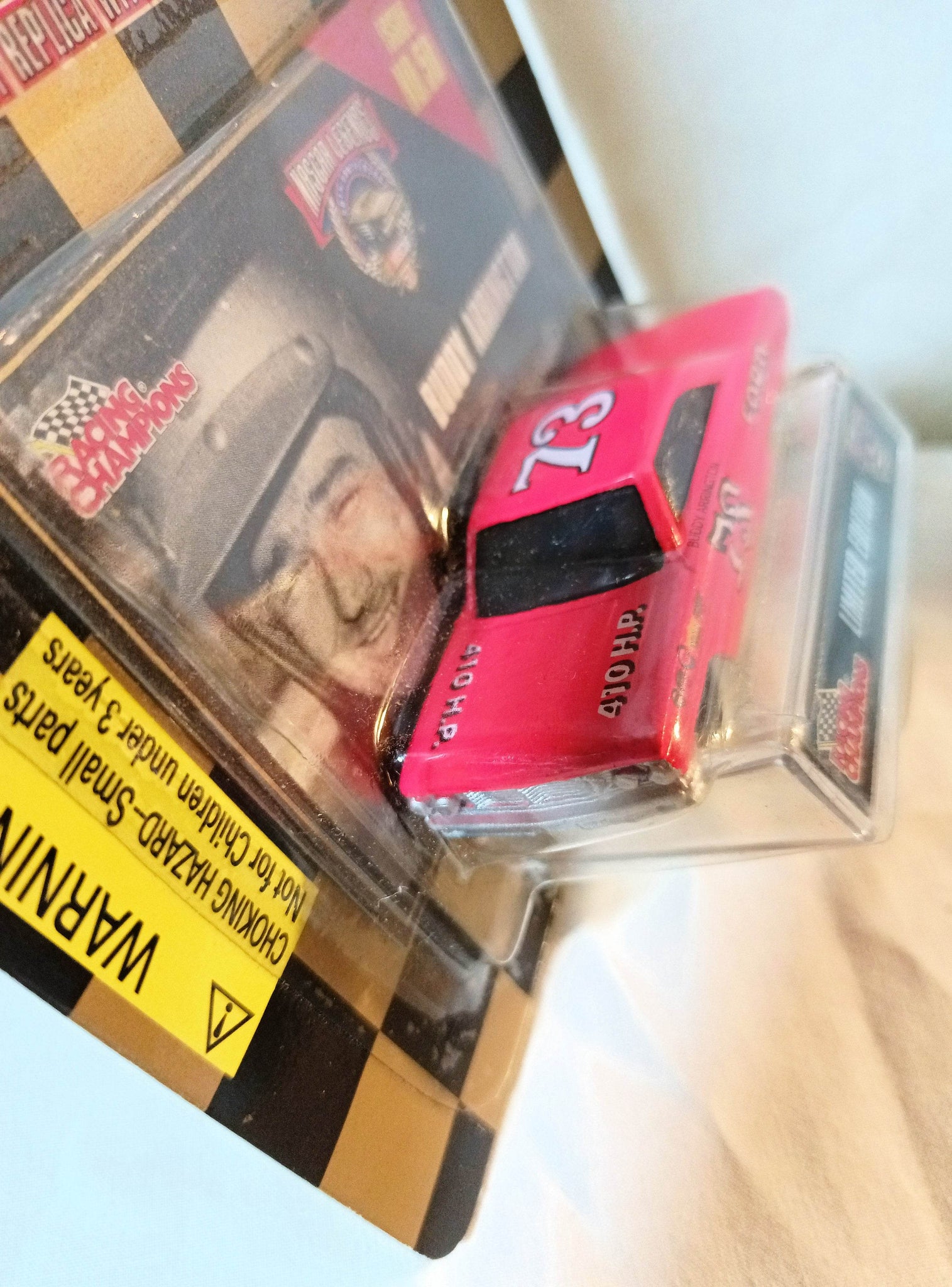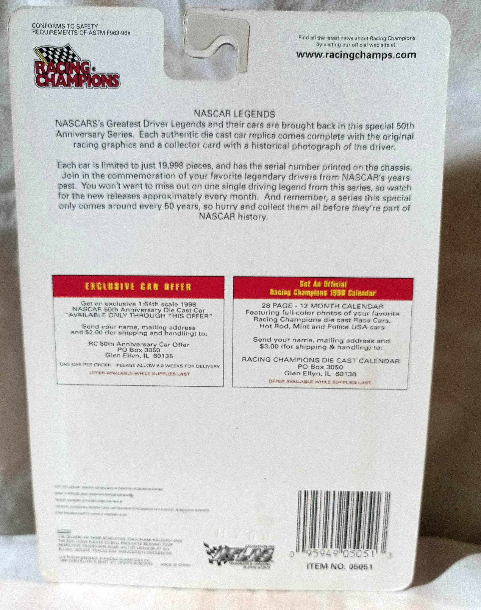 Racing Champions Nascar Legends series, limited edition of 19,998, 50 Years of Nascar Commemorative Series, issue #50, Buddy Arrington #73 1964 Ford die-cast metal replica NASCAR stock car with collector card and display stand.