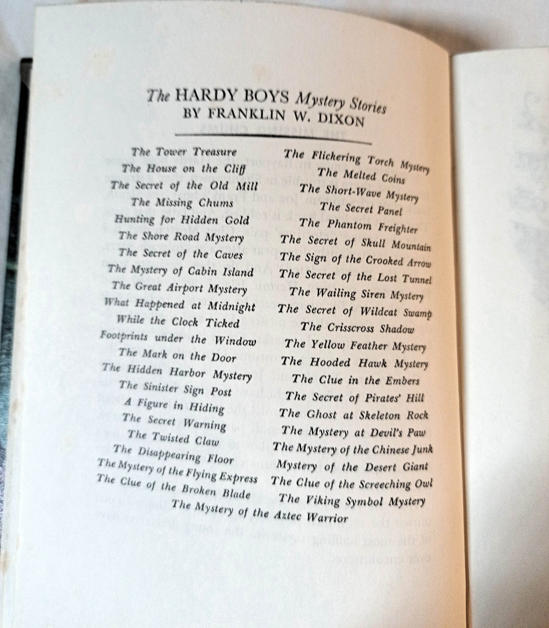 The Missing Chums, The Hardy Boys Mystery Stories #4 in the series. Author: Franklin W. Dixon. 175 printed pages pages. Hardcover book, no dust jacket. Publisher: Grosset & Dunlap, copyright 1962, printed circa 1972 in the U.S.A.