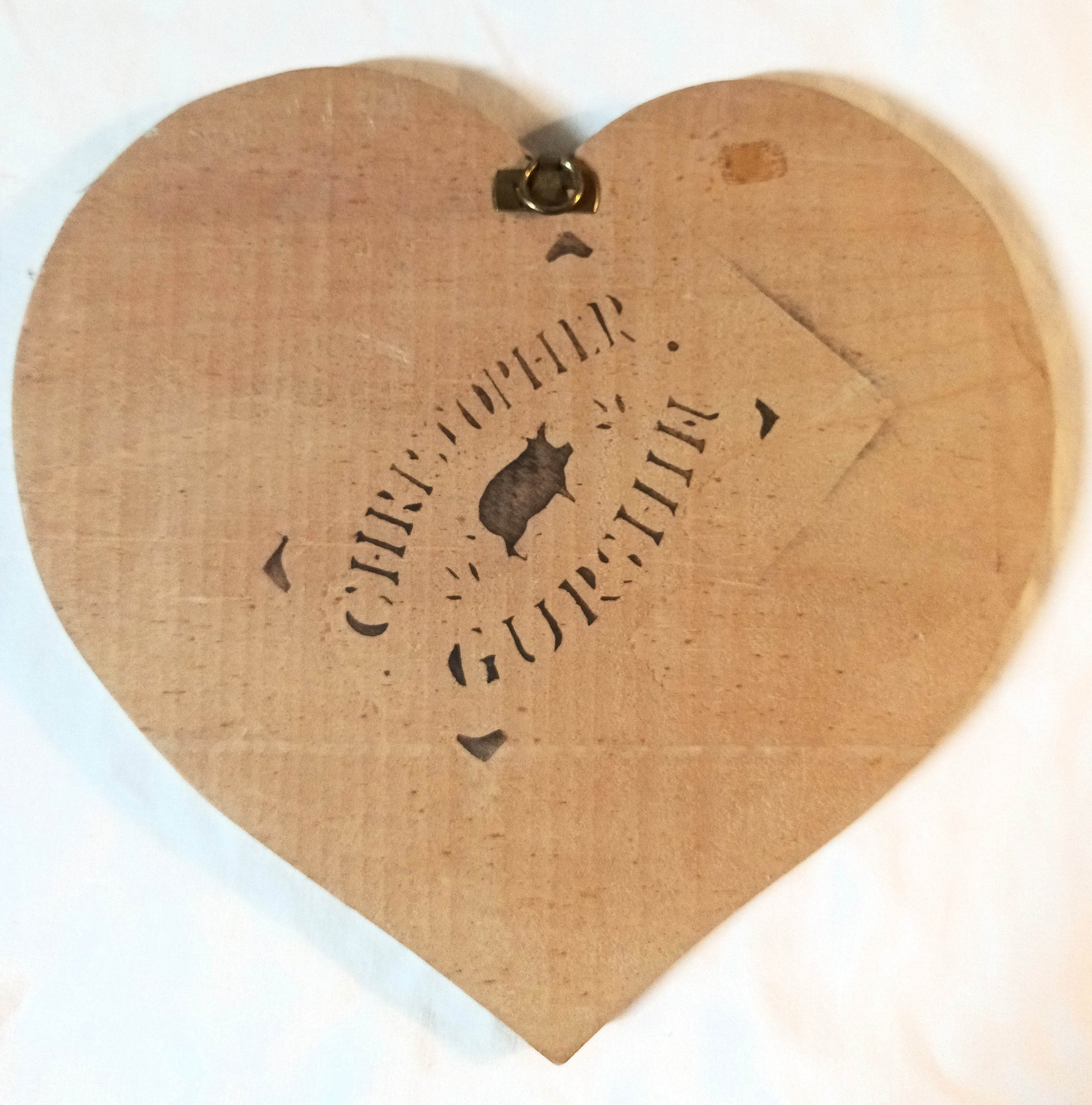Medium: Hand-painted with some stenciling on a heart-shaped wooden board