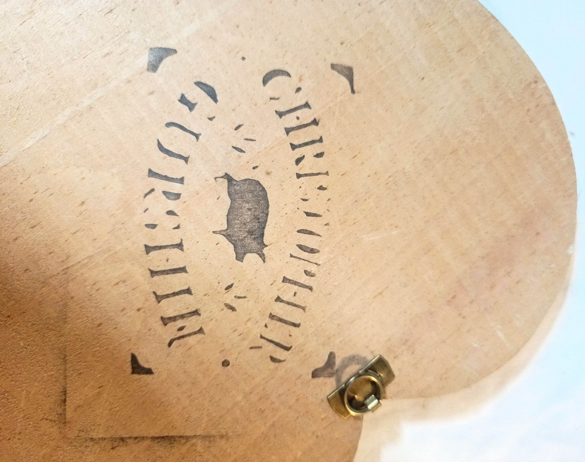 This is an original piece of New England folk art by well-known artist Christopher Gurshin, painted during the early 1980s (circa 1981-1984). The design shows Gurshin’s characteristic blend of freehand brushwork with stenciled details, a hallmark of his primitive New England style during this period.
